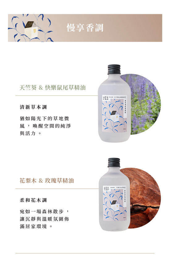 淡淡精油香氣漸漸蔓延。無毒的潔淨、療癒的香氛,讓安心與愜意隨之而來。